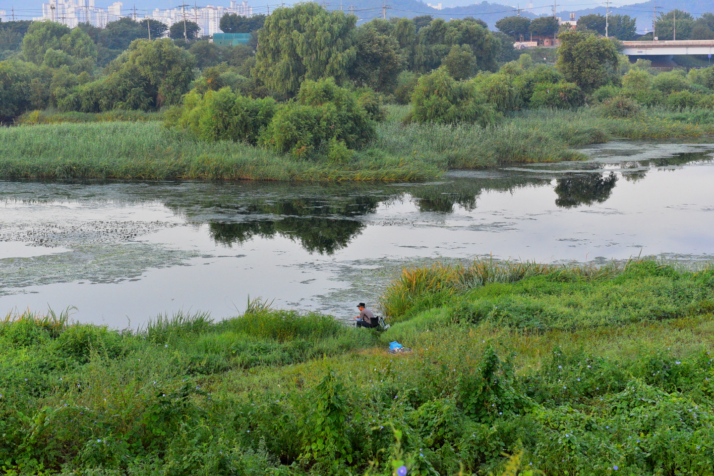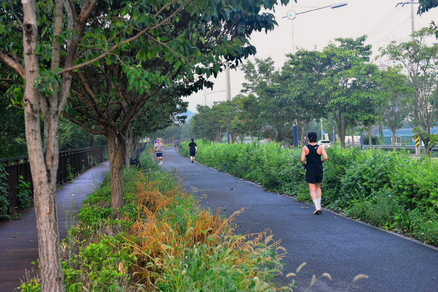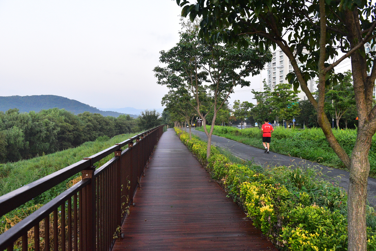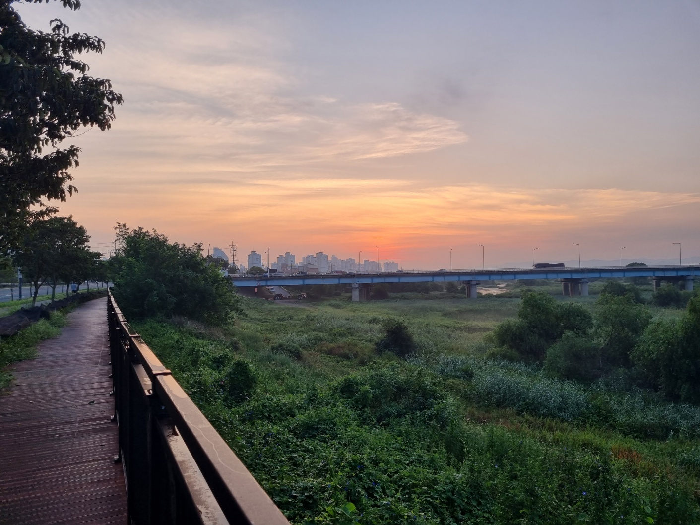 트레일 맵 // 동촌 해맞이다리~안심교~금호겅변길~안심습지~하양역 ... 22.8 km새벽 4시경 금호강변에 도착, 04:18분에 트레킹 출발이다주차장에서 바라본 보도 전용의 해맞이 다리해맞이 다리 ... 아직 일출 2시간 전이라 어둠이 짙은 새벽을 조심스레 담아보며 ..지난밤부터 새벽까지 비가 내린 탓인지 ... 비는 그쳤지만, 습도가 높은 출발이고,동촌 유원지, 아직 깊게 잠이 든 건너편 야경을 담아보며강변길을 올라가며 반영을 담아본다이른 새벽이지만, 산책객들이 보이고해맞이 다리를 돌아보며 새벽길 걷기에 몰입 ...짙은 어둠이라 반영사진을 담아보며 새벽의 여유를 즐겨보고빛이 약한 이른 새벽이라 야경외에는 찍을것이 없어 밝기를 기다린다...05:14 // 출발 1시간째, 율하천 지류를 건너며 4km 지점을 통과 ....05:38 // 일출 20분전, 주변이 밝아지며 율하 체육공원을 지나고 ...금호강 국가생태 탐방로에 들어선다여명으로 주변이 밝아지면서 많은 산책객들을 만난다산책로 데크길에 엄청 모여든 해바라기꽃 ... 앞다투어 고개를 밀기에 ^^새벽을 달리는 사람들 ...06:08 // 출발 2시간째, 안심교 주변에서 8km 지점을 지난다시간적으로는 일출시간이 되었는데, 건물에 가려서 조금 더 기다려야 할 듯 ...나팔꽃 화사한 아침인사를 받으며06:15분, 일출시간이 15분쯤 경과해서 ... 건물 위로 솟구치는 일출을 만난다밤사이 많은 비가 내려서인지 늦은 일출이라도 보게 되네요안심교를 지나고강변에는 벌써 태공들과 먹고 먹히는 눈치전쟁이 벌어지고 ...생태계 보흐를 위해 ... 조류를 관찰할 수 있는 탐조대(조류관찰대) 까지곱게 단장한 배롱나무꽃 ...아직은 더운 계절이라 ... 시원스런 차림도 보이고아름다운 반영을 담는데 ...KTX 상행선이 힘차게 달려든다 ...잠수교를 지나고안심습지 전망대에 도착 ... 여기서 아침을 해결키로 하고전망대에서 내려본 안심습지, 아랫쪽 쉼터에서 커피타임을 ...07:31 // 출발 3시간이 넘어서고 안심습지 중간쯤에서 12km 지점을 통과한다 .... 이하 후편에 계속트랭글 GPS 기록