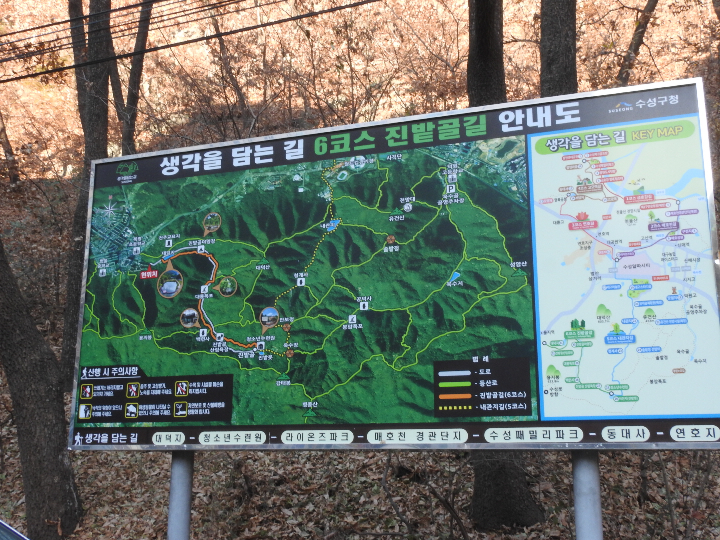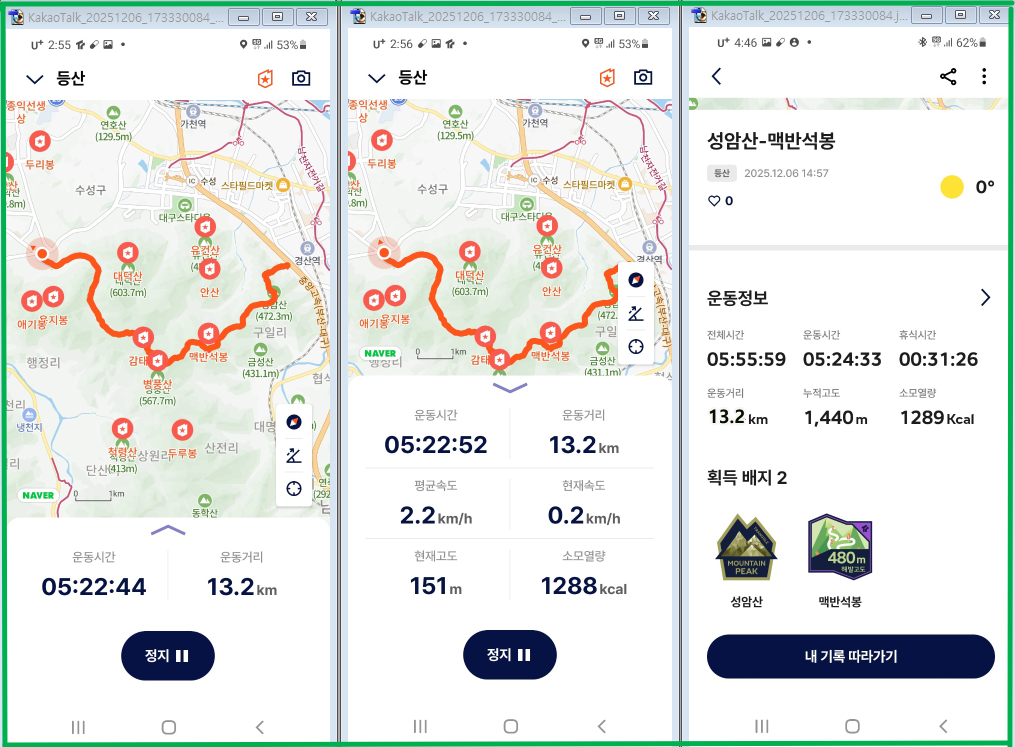 산행도 // 경산현충공원~성암산~맥반석봉~광산고개~범물동09:00 // 경산 현충공원에 주차한 후현충공원을 둘러보며 산행 출발현충공원을 지나 수정사 옆 들머리로 올라서며 ...나무계단이 체육시설이 있는 안부 능선까지 900여개를 올라가야 한다데크계단길과 돌계단까지 900여 계단길을 30여분간 오르면 ...09:30분경, 체육시설이 있는 안부 능선에 도착하고안부능선에서 다시 주능선길로 500여 계단길을 20여분간 오른 후 ...정상직전 전망바위에서 돌아본 팔공산 주능선과 경산시출발 1시간만에 성암산 정상(성암정)에 도착 ...경산 신도시와 뒷편으로 금호강과 팔공산이 둘러있다4년만에 다시만난 ... 성암산 정상(472m) / 오늘까지 10번째 만남 ~줌으로 당겨본 경산 남매지못과 뒤편으로 ... 100만평 규모의 영남대학교직선거리 5km 거리의 영남대학교와 20층 높이의 중앙도서관을 당겨본다 ... 건축당시 북한 김일성 대학보다 1층 더 높혔다는 후문이 ...성암산에서 내려서며 방화선따라 시경계산행을 이어간다대구와 경산을 가르는 시경계 ... 탱크라도 지나갈 만큼 넓직한 방화선따라 등로가 펼쳐지고차가운 영하의 날씨지만, 햇볕이 잘 드는 곳이라 출발이 좋다오늘도 함께 산행길에 나선 선배님 ...여기까지는 걷기 좋은길이 펼쳐지지만, 이후로 오르막 내리막이 반복되는 롤러코스트 등로가 이어진다11:27 // 출발 2시간 30분째, 맥반석봉(580m)에 도착 ...여기까지 4.6km 지점을 통과하며, 성암산에서 1시간 10분 정도 걸어온 듯 ...양지바른길, 인근 사찰에서 올라온 견공들도 보이고 ...12:09 // 출발 3시간이 넘어서면서 광산고개(570m)에 도착, 6.5km 구간을 통과광산고개 // 가창의 달성 광산 인부들과 경산.고산 사람들이 넘나들던 고갯길이다 ... 당시 15km거리의 산길을 이 고개를 통하여 이용한 듯12:36 // 산행 3시간 30분만에 욱수정에 도착하여, 오찬겸 휴식을 취하며 ... 7.7km 구간을 지난다욱수정에서 진밭골로 하산하며 8km 지점을 지나고수성 별사랑 캠핑촌을 지나는데산악 걷기대회를 하는 참가자들이 지나간다 ... 이 구간은 22km 코스여기가 통과지점이라 하여 물어보았더니 ... 2025 대구 KIS 트레일 러닝대회라고 하는데 11km , 22km 대회라네요 (여기는 22km 코스)집에와서 KIS 홈페이지를 살펴보니 ... 대구스타디움에서 출발하여 이곳 욱수정~진밭골~만보정 주변을 돌아나가는 코스 인 듯많이 다녀본 코스라 내년에 참가할 예정이다여기는 22km 코스 ... 용지봉에서 대덕지로 내려온 후 다시 진밭골 욱수정~만보정으로 올라가는 구간안내 표지네요 ... KOREA TRAIL진밭골에서 내려오며 만난 체험농장 ... 팜 다원앞으로 돌아가니 ... 치유정원 체험농장이라네요 ...10km 지점을 지나며 ...주인의 손길을 기다리고 있는... 높직이 메달린 감들을 당겨본다생각을 담는길 ... 계곡따라 데크길이 이어지며크고작은 얼음들이 계곡에 덮히고 ...얼어붙은 계곡과 함께 산골은 벌써 겨울에 잠겨든다진밭골 캠핑촌을 지나고 ... 조금후 12km 구간을 지난다대덕지 옆 플라네 카페 // 야외 테이블에 온실처럼 비닐로 처리하여 따뜻한 공간을 연출 ...대덕산과 대덕지 ...종착지 범물동으로 내려오며 담아본 산수유 열매 ...진밭골 아랫쪽 범물동에 도착하며 제 10차 대구시경계산행을 엔딩트랭글 GPS 기록